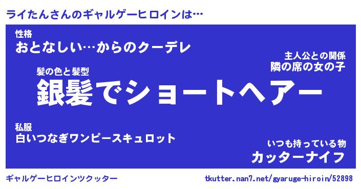 | 意味不明あだ名 | 『ペロリンライたん』『永久保存ライたん』 |