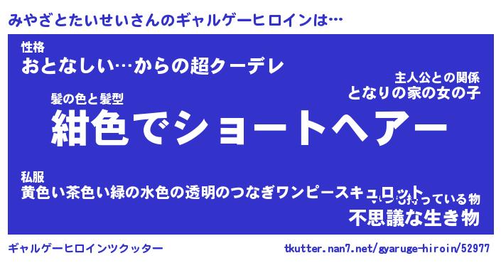 | 男性向けラノベタイトル風あだ名 | 『ミヤザトタイセイアートオンライン』 |