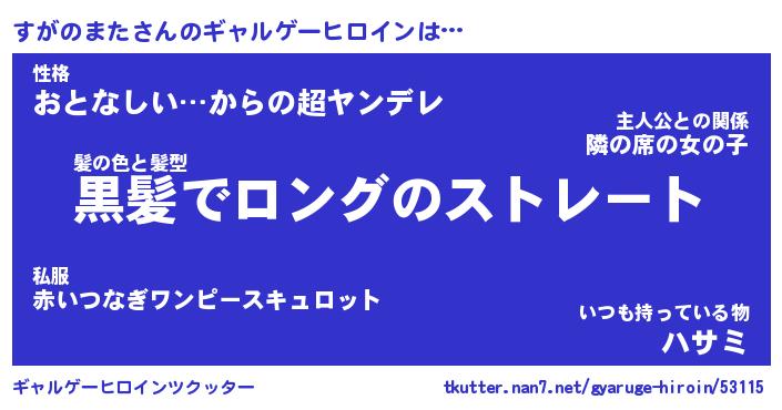 | 男性向けラノベタイトル風あだ名 | 『すがのまたの憂鬱』 |