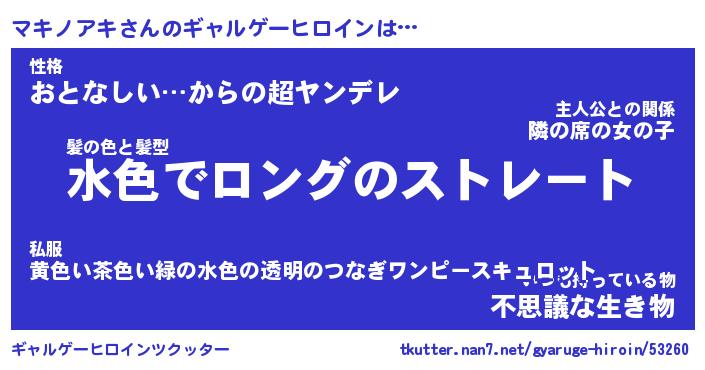 | 男性向けラノベタイトル風あだ名 | 『マキノアキの憂鬱』 |
