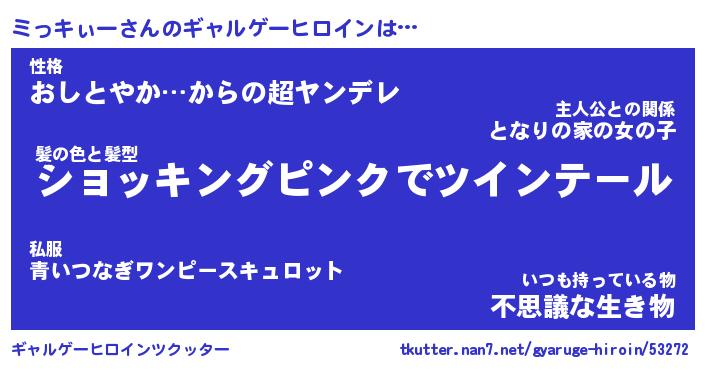 | 女子向けラノベタイトル風あだ名 | 『(仮)ミっキぃーのやんごとなき事情』 |