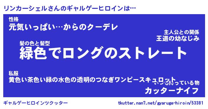 | 女子向けラノベタイトル風あだ名 | 『リンカーシェル姫と円卓の騎士』 |