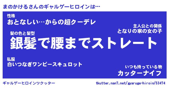 | ファンタジー風あだ名 | 『マノフェル』『エターナルマノカケルー』 |