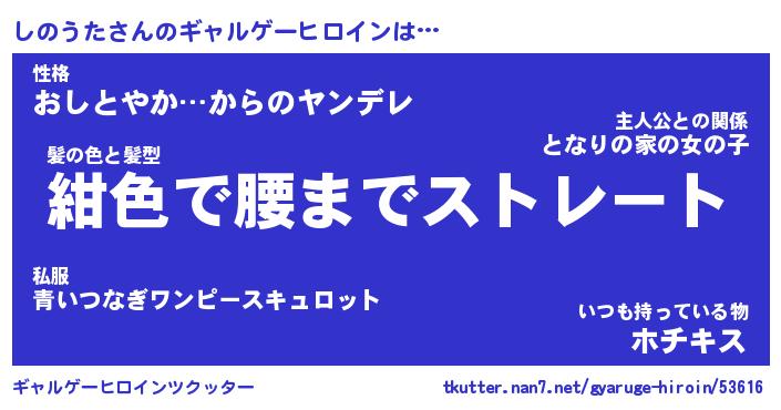 | 男性向けラノベタイトル風あだ名 | 『シノウタアートオンライン』 |