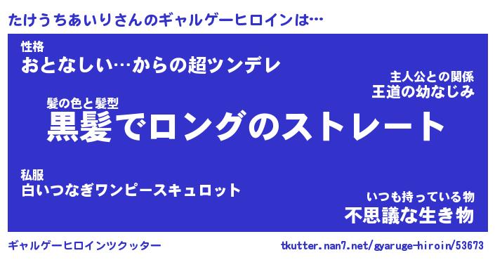 | 女子向けラノベタイトル風あだ名 | 『(仮)たけうちあいりのやんごとなき事情』 |