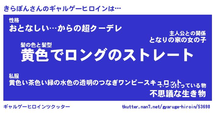 | ファンタジー風あだ名 | 『キラフェル』『エターナルキラポンー』 |