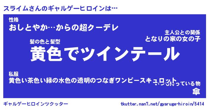 | 意味不明あだ名 | 『ペロリンスライム』『永久保存スライム』 |
