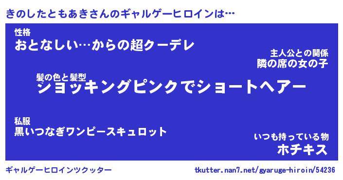 | 女子向けラノベタイトル風あだ名 | 『(仮)きのしたともあきのやんごとなき事情』 |