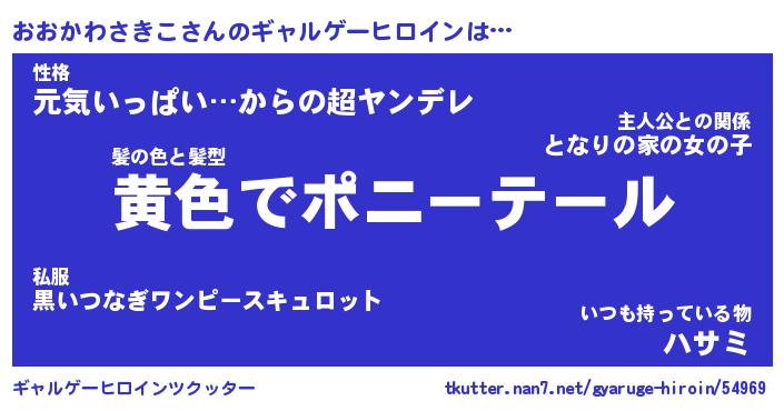| 女子向けラノベタイトル風あだ名 | 『誰かこのおおかわさきこを説明してください! ~契約から始まるウェディング~』 |
