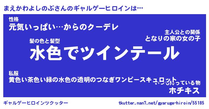 | 女子向けラノベタイトル風あだ名 | 『(仮)まえかわよしのぶのやんごとなき事情』 |