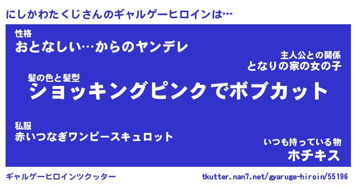 | 女子向けラノベタイトル風あだ名 | 『(仮)にしかわたくじのやんごとなき事情』 |