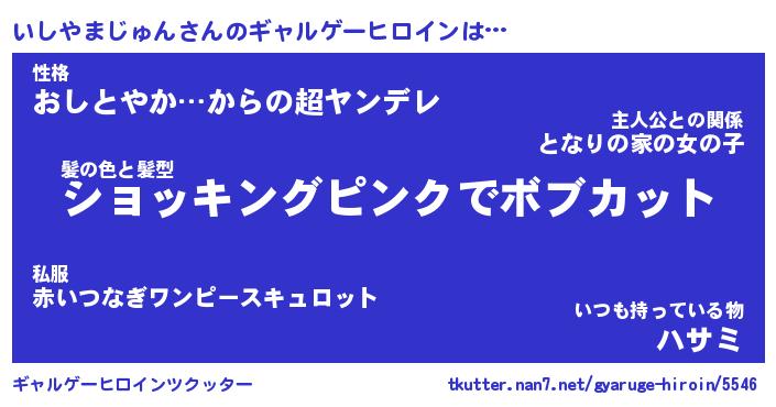 | 女子向けラノベタイトル風あだ名 | 『(仮)いしやまじゅんのやんごとなき事情』 |
