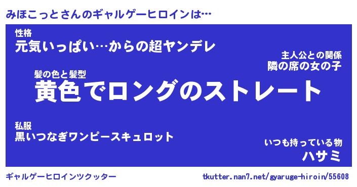 | 男性向けラノベタイトル風あだ名 | 『ミホコットアートオンライン』 |