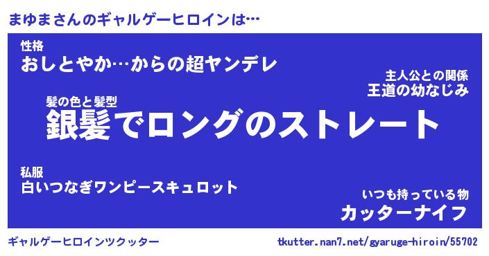 | 男性向けラノベタイトル風あだ名 | 『まゆまの憂鬱』 |