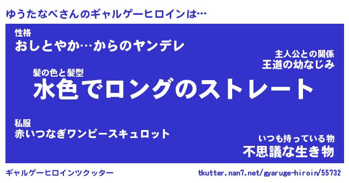 | 女子向けラノベタイトル風あだ名 | 『(仮)ゆうたなべのやんごとなき事情』 |
