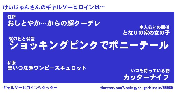 | 男性向けラノベタイトル風あだ名 | 『けいじゅんの憂鬱』 |