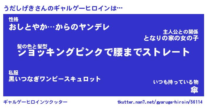| 女子向けラノベタイトル風あだ名 | 『(仮)うだしげきのやんごとなき事情』 |