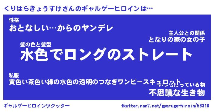 | 女子向けラノベタイトル風あだ名 | 『(仮)くりはらきょうすけのやんごとなき事情』 |