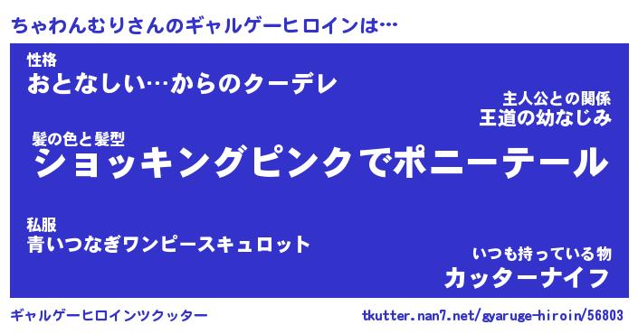 | 女子向けラノベタイトル風あだ名 | 『(仮)ちゃわんむりのやんごとなき事情』 |