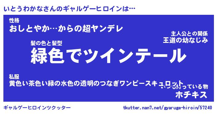 | 男性向けラノベタイトル風あだ名 | 『イトウワカナアートオンライン』 |