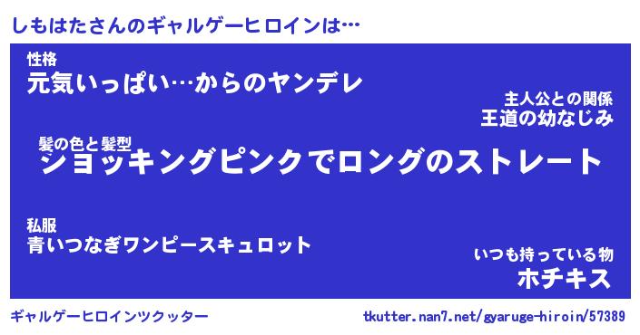 | 女子向けラノベタイトル風あだ名 | 『(仮)しもはたのやんごとなき事情』 |