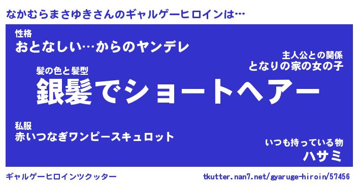 | 女子向けラノベタイトル風あだ名 | 『なかむらまさゆき姫と円卓の騎士』 |