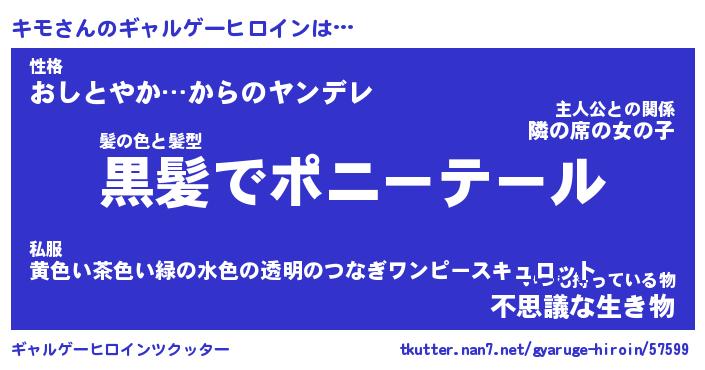 | 男性向けラノベタイトル風あだ名 | 『キモの憂鬱』『ノーゲーム・ノーキモ』 |