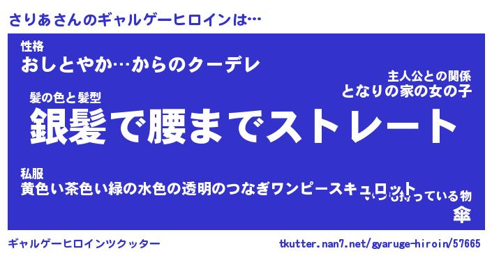 | 男性向けラノベタイトル風あだ名 | 『さりあの憂鬱』 |