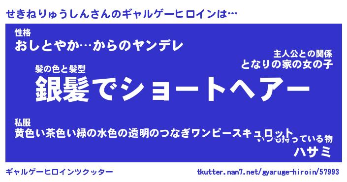 | 男性向けラノベタイトル風あだ名 | 『せきねりゅうしんの憂鬱』 |