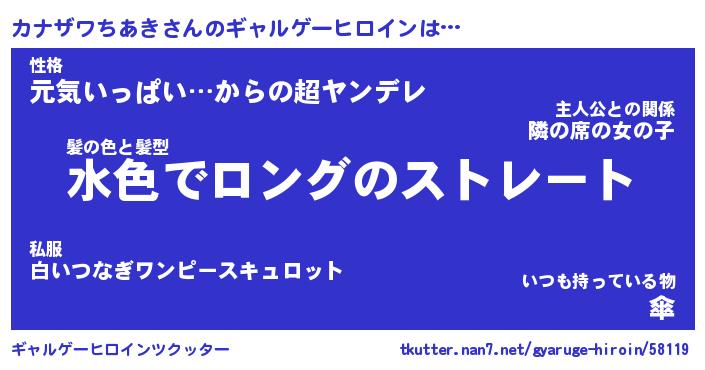 | 男性向けラノベタイトル風あだ名 | 『カナザワちあきの憂鬱』 |