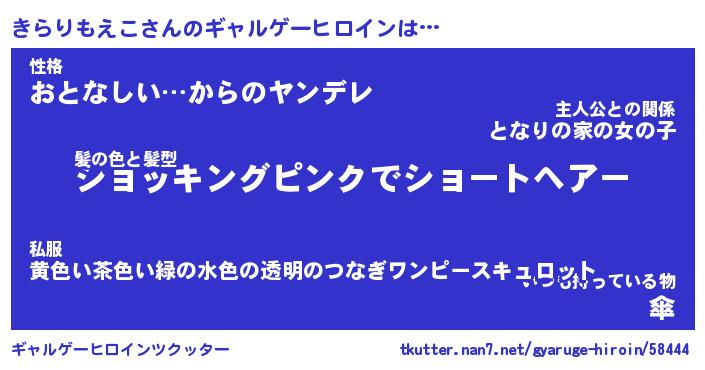 | 肩書あだ名 | 『きらりもえこ社長令嬢』 |