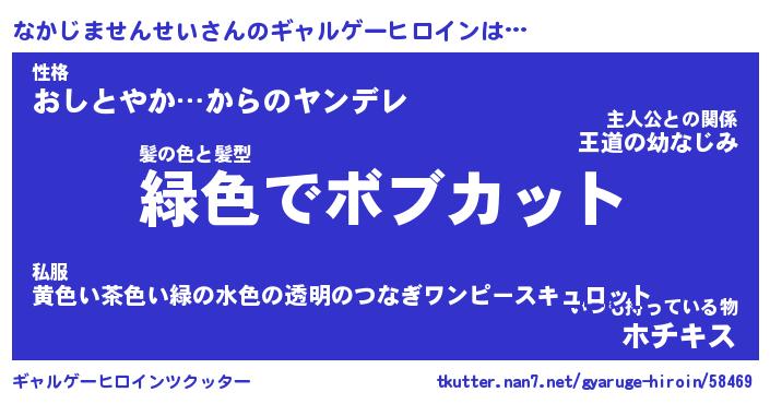 | 女子向けラノベタイトル風あだ名 | 『なかじませんせい姫と円卓の騎士』 |