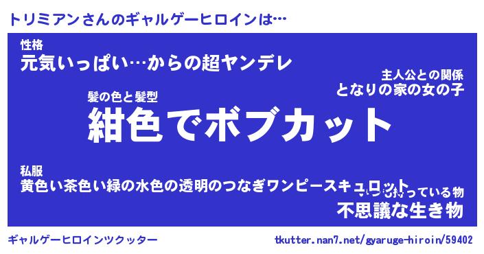 | 男性向けラノベタイトル風あだ名 | 『トリミアンアートオンライン』 |