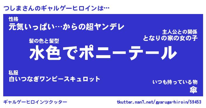 | ファンタジー風あだ名 | 『ツシフェル』『エターナルツシマー』 |