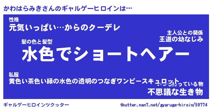 | 女子向けラノベタイトル風あだ名 | 『(仮)かわはらみきのやんごとなき事情』 |