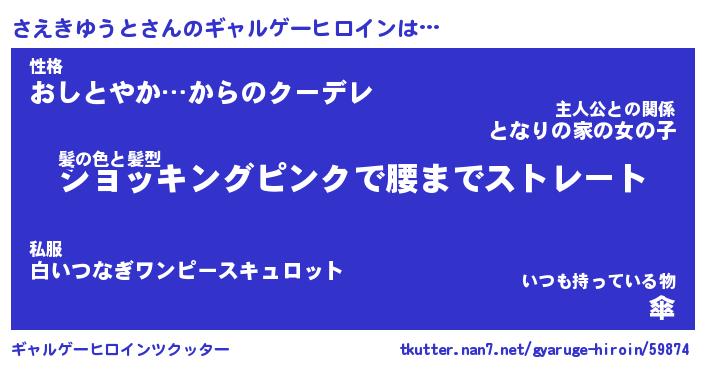 | ヒーロー風カッコイイあだ名 | 『スーパーサエキユウト』『天弓騎士サエ』 |