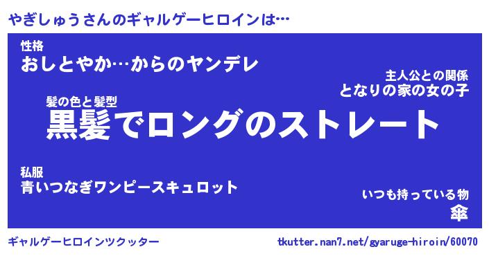 | 男性向けラノベタイトル風あだ名 | 『やぎしゅうの憂鬱』 |