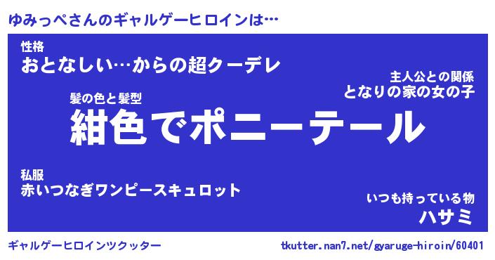 | ヒーロー風カッコイイあだ名 | 『スーパーユミッペ』『幻影騎士ユミ』 |
