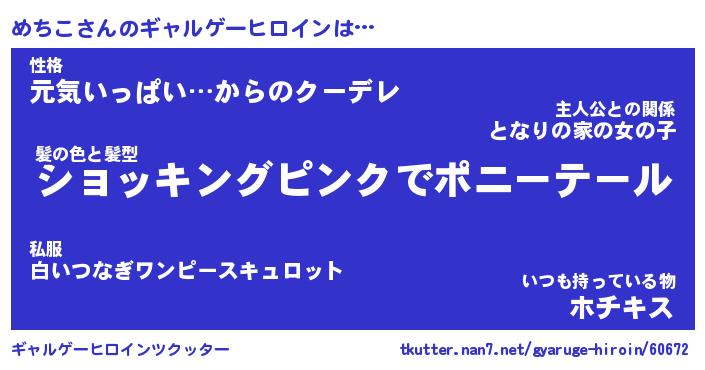 | 男性向けラノベタイトル風あだ名 | 『めちこの憂鬱』 |