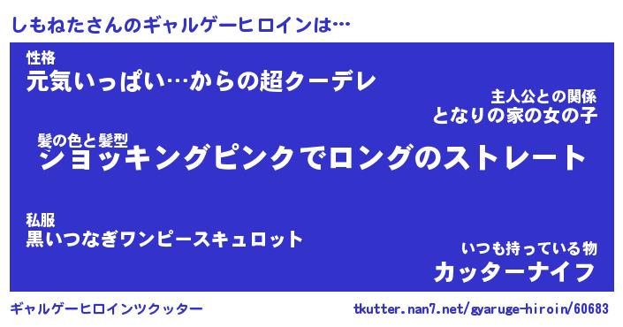 | 男性向けラノベタイトル風あだ名 | 『しもねたの憂鬱』 |