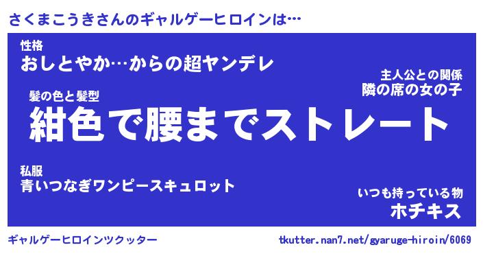 | ヘコむあだ名 | 『さくっふぃ~』『つくし』 |