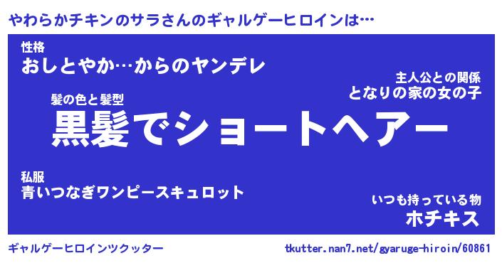 | 男性向けラノベタイトル風あだ名 | 『やわらかチキンのサラの憂鬱』 |