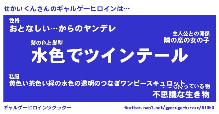 | 男性向けラノベタイトル風あだ名 | 『せかいくんの憂鬱』 |