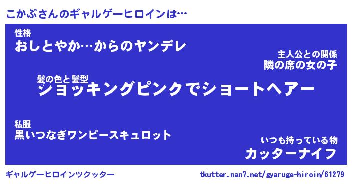 | 女子向けラノベタイトル風あだ名 | 『(仮)こかぶのやんごとなき事情』 |