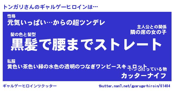 | 男性向けラノベタイトル風あだ名 | 『トンガリの憂鬱』 |