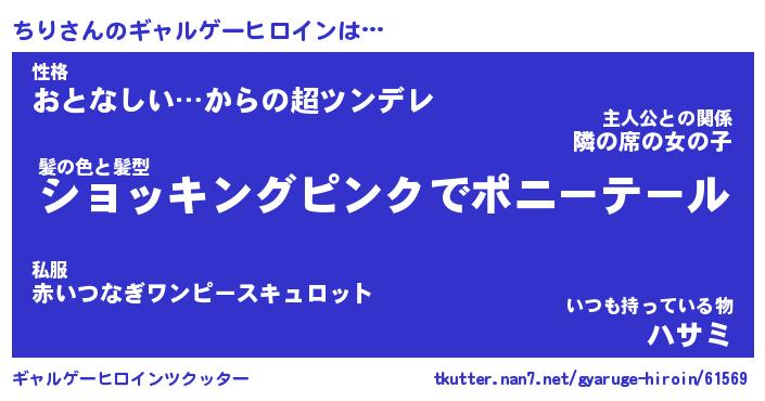| 男性向けラノベタイトル風あだ名 | 『ちりの憂鬱』『ノーゲーム・ノーチリ』 |
