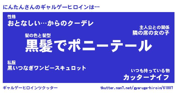 | 男性向けラノベタイトル風あだ名 | 『にんたんの憂鬱』 |