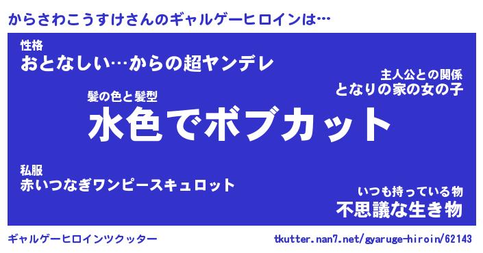 | 女子向けラノベタイトル風あだ名 | 『(仮)からさわこうすけのやんごとなき事情』 |