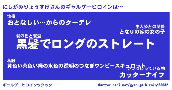 | 女子向けラノベタイトル風あだ名 | 『(仮)にしがみりょうすけのやんごとなき事情』 |