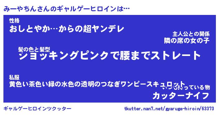 | ファンタジー風あだ名 | 『ミーフェル』『エターナルミーヤチンー』 |